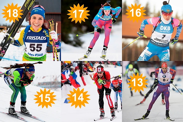 18 место – Элизабет Хёгберг (34 года, Швеция). Достижения:  шесть раз побеждала в личных гонках на Кубке IBU, чемпионка Европы в спринте. Элизабет Хёгберг  – статист на Кубке мира: 141 личная гонка, 513 заработанных очков и только 8 место – её лучший результат.