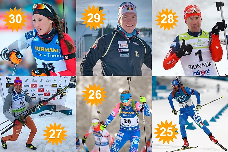 На фото: 30 место – Юлия Швайгер, 29 место – Флоран Клод, 28 место – Алексей Слепов, 27 место – Филипп Наврат, 26 место – Евгения Павлова, 25 место – Томас Бормолини
