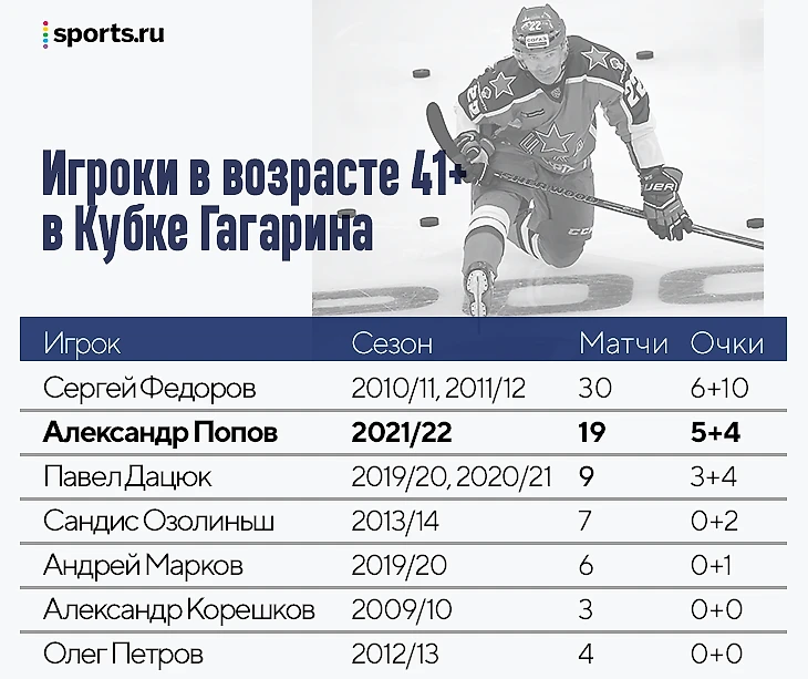 Простая табличка, которая объясняет, почему Александр Попов – уникальный хоккеист.