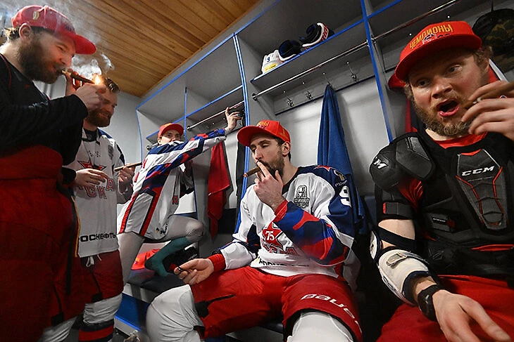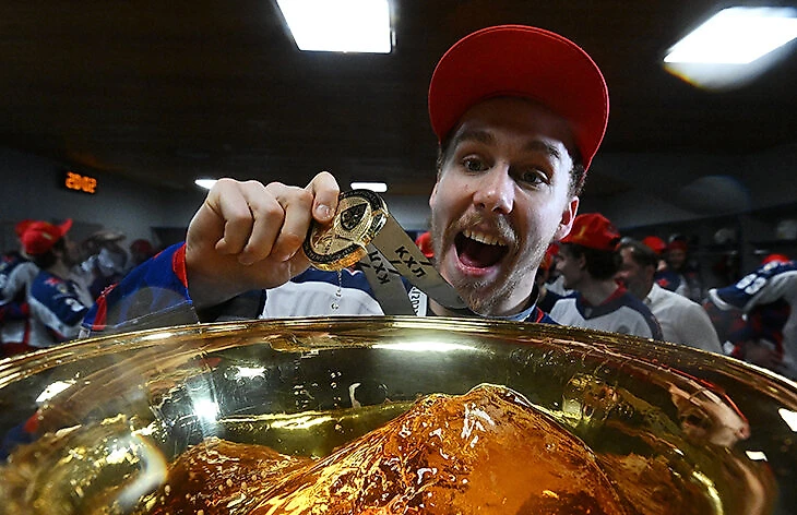 Самое интересное продолжилось в раздевалке, где Кубок Гагарина наполнился шампанским. «Теперь можно и выпить!» – крикнул капитан команды Сергей Андронов – и к чашке тут же выстроилась очередь.
