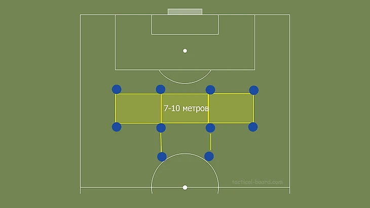 Компактные 4-4-2 – один из лучших вариантов при игре в обороне. Данная формация дает лучшие шансы для компактного расположения и блокировки центральной зоны + подстраховка. На каждом участке поля по два игрока, один из которых страхует второго когда тот встречает соперника. Компактность заключается в плотном блоке, состоящим из трех квадратов, в котором игроки сохраняют стройность линий и расстояние между друг другом (примерно 7-10 метров).