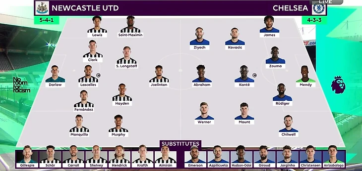 Сен-Максимен и Жоэлинтон стали играть по центральным защитникам, Хэйден опекал Канте в центре. Лонгстафф и Мерфи перестроились в пару опорных полузащитников, играя против Маунта и Ковачича. При передачах на фланги, крайние защитники «Ньюкасла» выдвигались на оппонентов, стараясь накрыть игрока на приеме.