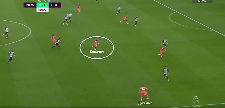 В результате, открывается вектор передачи на фланг Джеймса, и Ковачич остается открытым в центре.