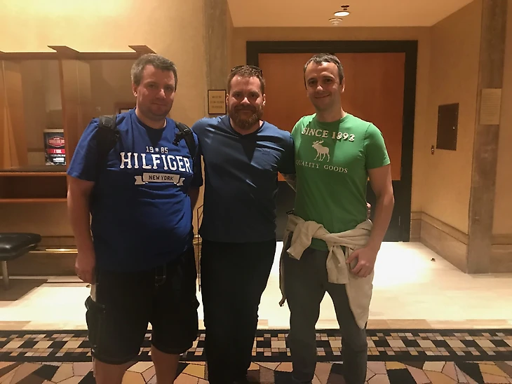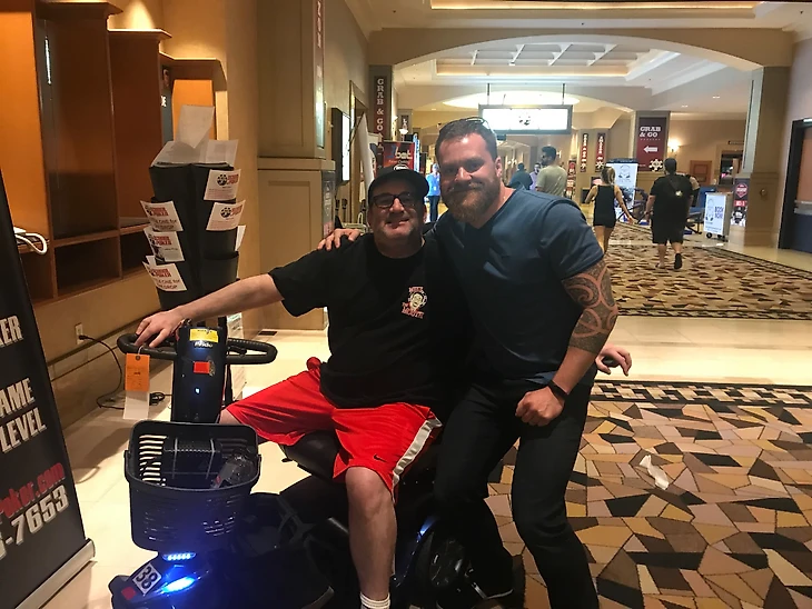 Лично у меня возникла борьба с моим внутренним «я», когда я увидел надпись Main Event в списке турниров, стоя у стола, где регистрировали игроков. Я уже был готов достать кредитку и оплатить buy-in, но вспомнил, что именно к Main Event’у я не готовился вообще никак. О подготовке поговорим ниже. После регистрации в своем первом ивенте Мировой Серии я поехал обратно в отель, в котором остановился. По пути к выходу встретил грустного Мишу Семина, который почему-то попытался со мной сначала заговорить по-английски. Мы перекинулись парой общих фраз, пожелали друг другу удачи и сфотографировались на прощание.