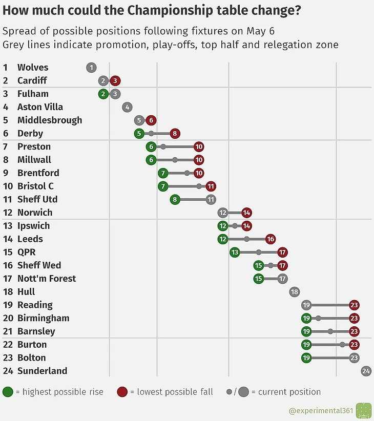Две команды ещё могут спастись (при неудачах конкурентов): «Болтон» дома сыграет с «Ноттингем Форест» (которым уже всё равно), а «Бёртон», как я уже писал, в гостях сразится с «Престоном»