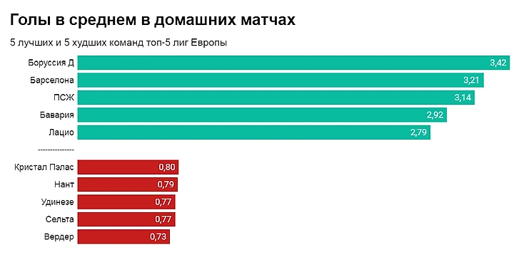 Лучшие и худшие команды топ-5 лиг Европы по атакующей статистике в домашних матчах
