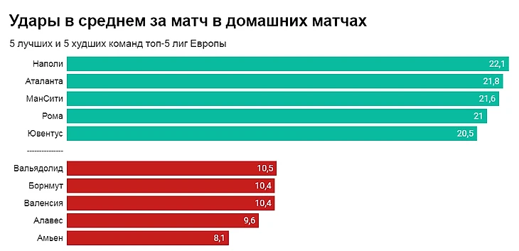 Самой бьющей в среднем за матч домашней командой топ-5 лиг Европы стал «Наполи» (11,1 удар за матч).