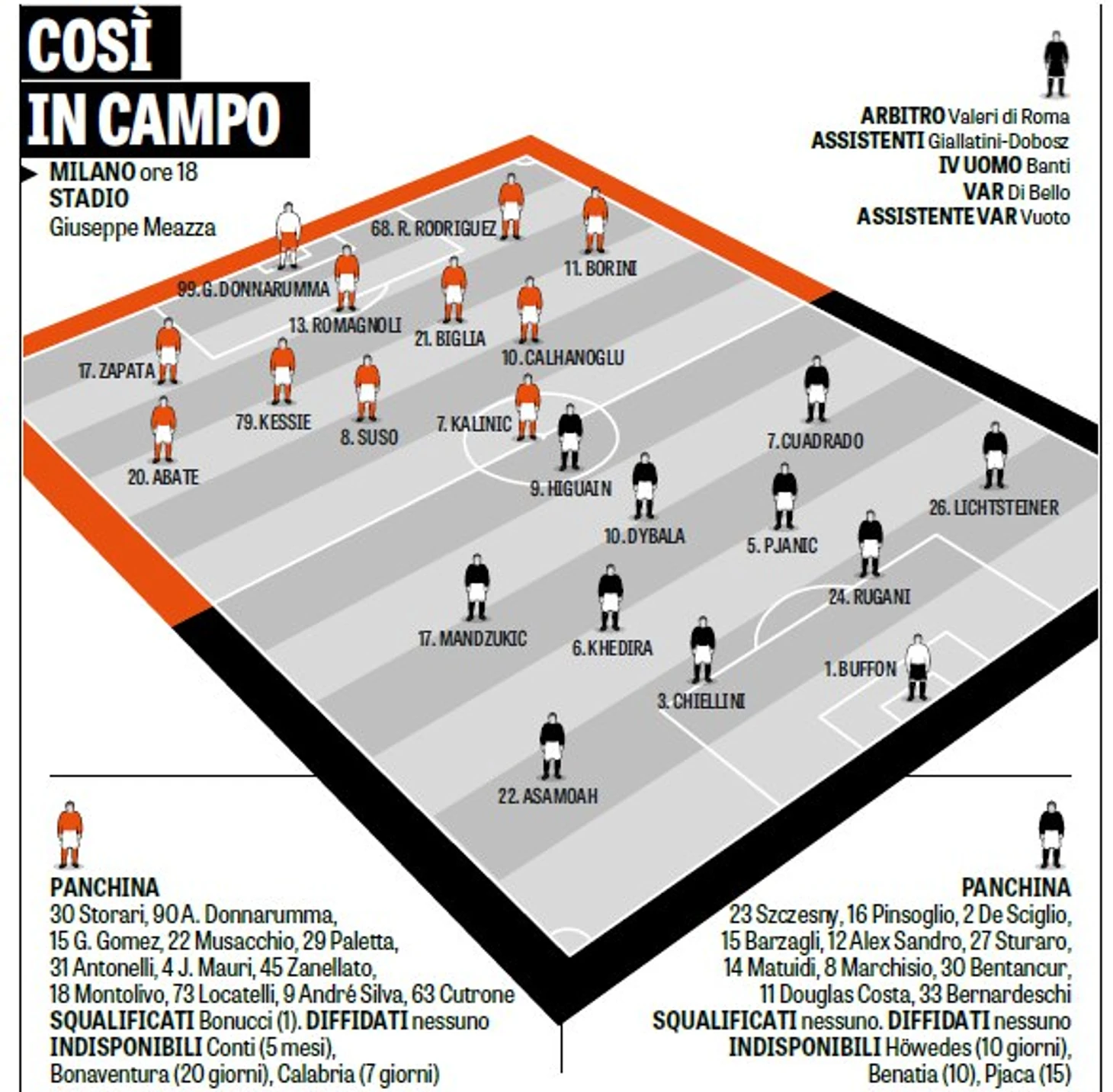 ● Ориентировочные стартовые составы от La Gazzetta dello Sport.