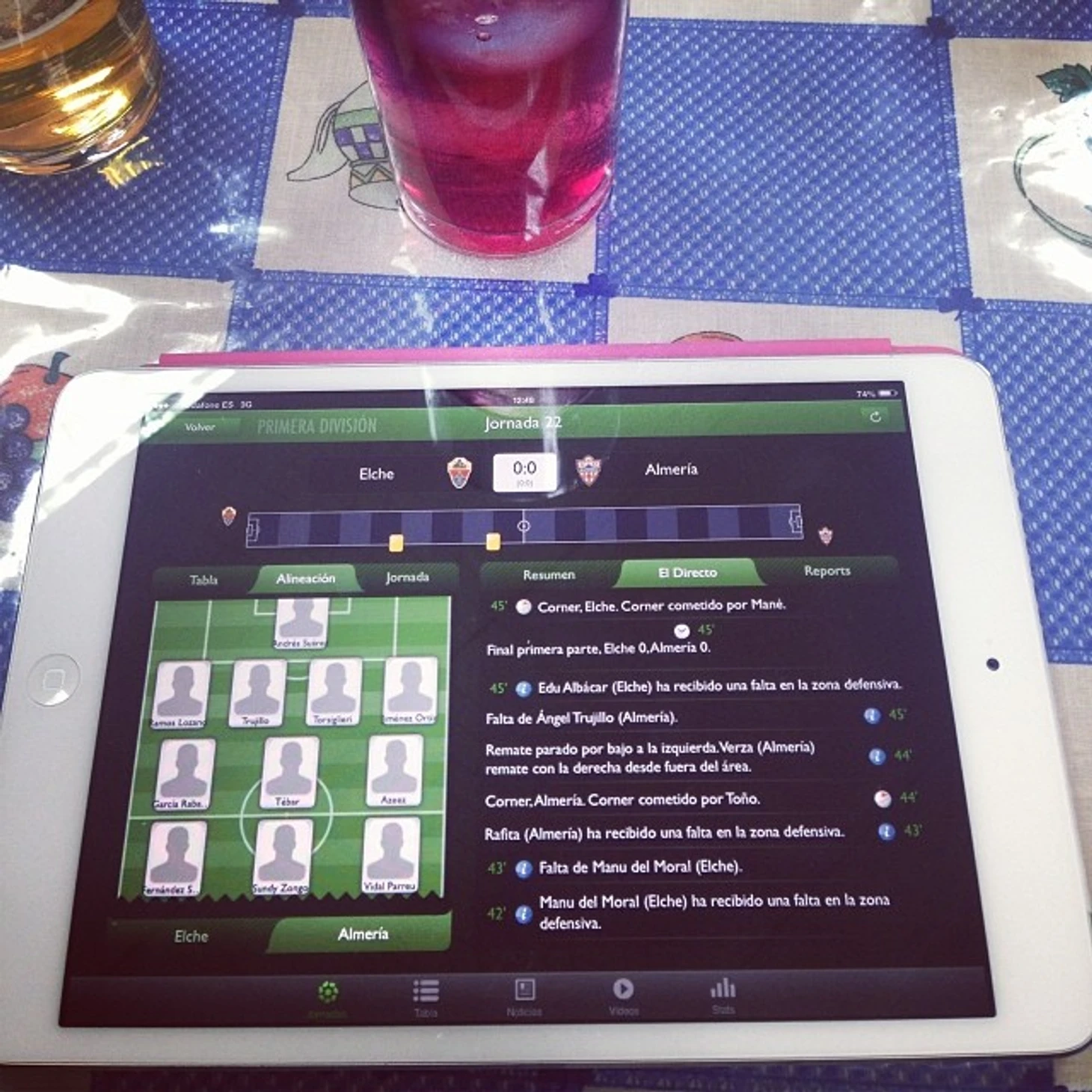 А вот так его девушка наблюдала за матчами. Публикация датируется 2 февраля 2014 годом. Именно в тот день состоялся матч 22 тура Ла Лиги "Эльче" - "Альмерия". Увы, но команда Сусо потерпела поражение (1:0). Сам игрок начал матч со старта и был заменен на 64 минуте.