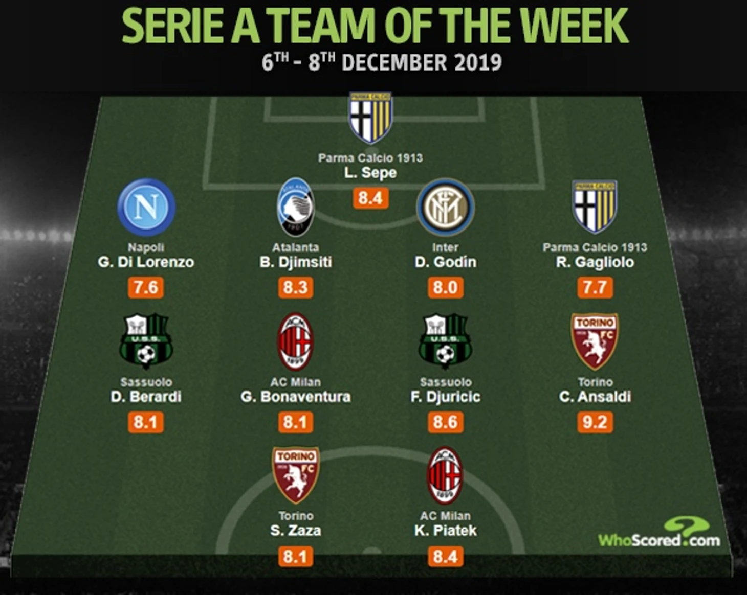 WhoScored: «Символическая сборная 15-ого тура Серии А»