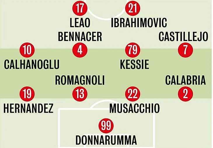 6. "Милан" выйдет на сегодняшний матч с "Кальяри" по схеме 4-4-2.