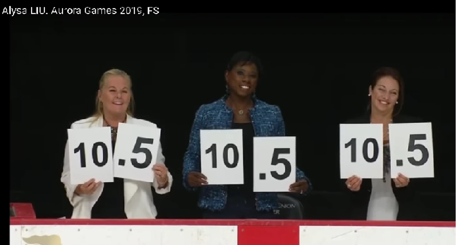 Итак, абсолютно очевидно, что ISU этим своим документом – «Шкала стоимости, Уровни сложности, Руководство по определению GOE» -- вполне недвусмысленно предписывает судьям относить Аксель в три с половиной оборота, не смотря на его формальное обозначение «3А», к категории четверных прыжков, а не тройных! А так как именно в эту шкалу судьи смотрят и кликают по ней указателями компьютерных мышек во время процедуры выставления оценок, фортель, который выкинула хитрая Алиса, просто неминуемо должен был на какое-то время привести их в замешательство. Однако, судя по тому, что на выставление оценок американке у судейской бригады ушло всего 1 минута и 54 секунды (для сравнения: Анастасия Тараканова дожидалась своих оценок 1 минуту и 57 секунд, Томое Кавабата -- 2 минуты и 1 секунду, Виктория Васильева -- 2 минуты и 21 секунду), никакого замешательства или разногласий среди её членов не было.