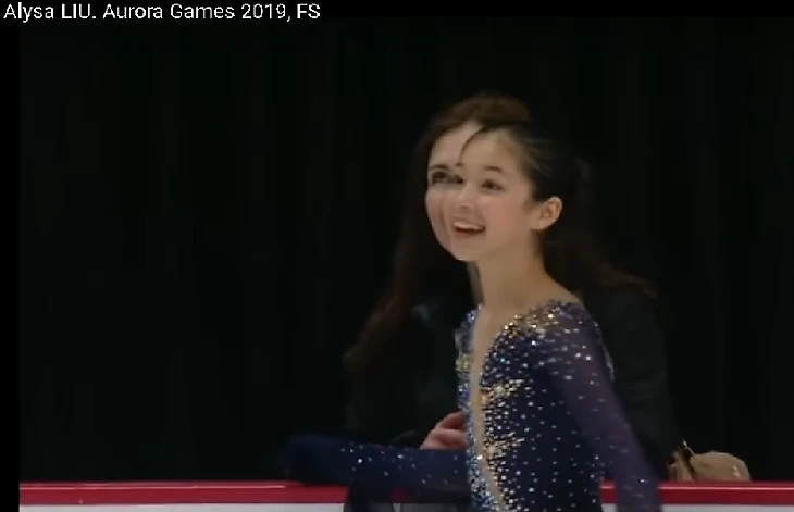 И вот, откуда ни возьмись, появилась 13-летняя американка Алиса Лью и за один год наловчилась прыгать в произвольной программе не только сразу два Акселя в три с половиной оборота (один -- в каскаде), но и четверной Лутц. Причём, бросается в глаза то, что на её лице никогда нет ни малейших признаков предстартового волнения. Запомнилась фраза, которую недавно произнёс американский комментатор, когда Алиса вместе со своей наставницей стояла у бортика перед выходом на стартовую позицию. В переводе на русский фраза звучит примерно так: « Глядя на её лицо, понимаешь, насколько она сконцентрировалась перед своим выступлением!» А у Алисы в этот момент -- рот чуть ли не до самых ушей!