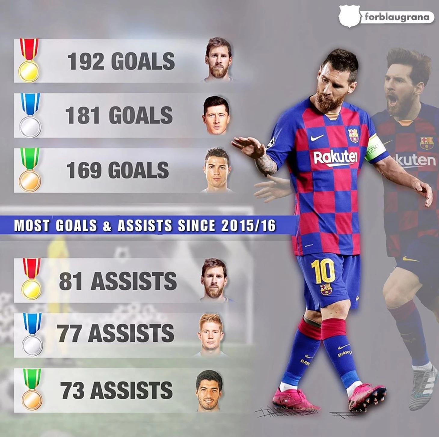 А еще забивает и ассистирует чаще любого другого игрока планеты, начиная с сезона 15/16 - как раз с того момента, когда по мнению ФИФА/УЕФА/ФрансФутбола Роналду, Модрич и Гризманн играли намного лучше. Ведь свой последний ЗМ аргентинец получил в 2015 году.