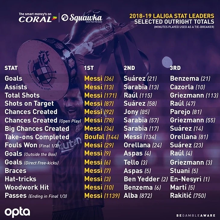 Какие могут быть дискуссии о заслуженности, если 2 прямых конкурента голосуют за тебя на премии ФИФА-Бест и предельно ясно высказываются на сей счет? А еще бывшие ливерпульцы, голландцы и бразильцы - то бишь представители конкурирующих лагерей. Филипе Луис прав, и Мане тоже прав: все знают Месси и не нужно тратить время на описания. А тем, кто еще не знает или намеренно делает вид, помогут статистические выкладки. Лео Месси в сезоне 2018/2019: