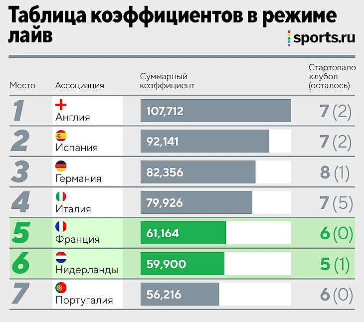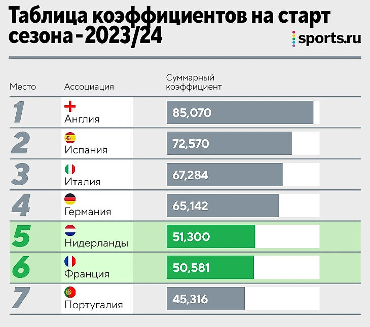В таблице коэффициентов УЕФА близится нечто историческое: высока вероятность, что вот-вот распадется традиционная топ-5. Нидерланды идут к тому, чтобы обогнать Францию.