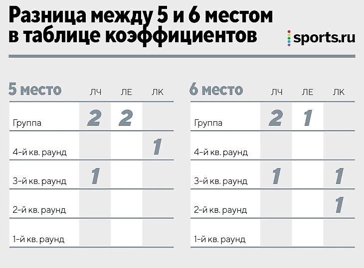 Это важно не только как символ. С сезона-2024/25 заработает новый формат Лиги чемпионов, при нем принципиальной будет разница именно между пятой и шестой строками: чуть выше – отправляешь три команды напрямую и одну в квалификацию, чуть ниже – никаких бонусов, все как сейчас (три команды суммарно, две напрямую).