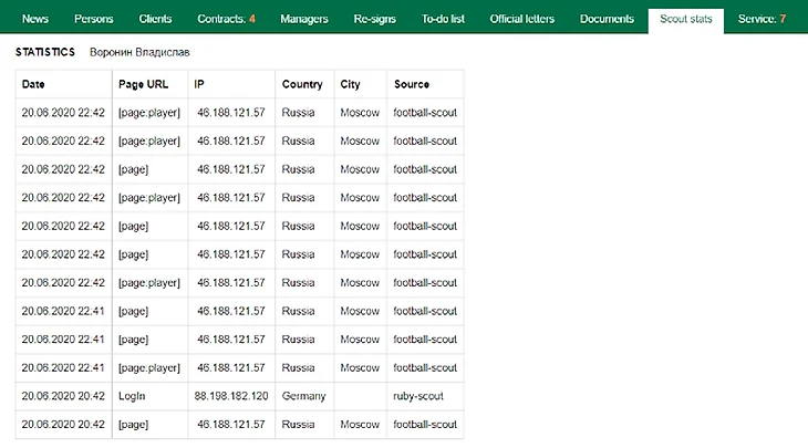 В этом случае я вижу, что вы заходили в профайлы неких игроков, но я не вижу, какого именно игрока вы просматривали. Больше нет подробных данных. В первую очередь, эта детализация нам нужна была, чтобы понимать, какими вещами в нашей системе люди пользуются больше, а какими – меньше. Система InStat Scout – многогранна. Важна не фамилия игрока или название команды, которую посетил пользователь, а те опции, которые были при этом задействованы. В отдельных случаях подобный доступ также помогал сотрудникам нашей технической службы быстрее отреагировать на обращения пользователей.