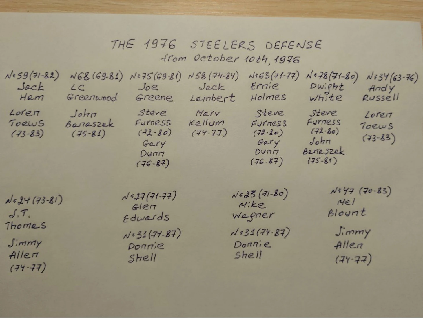 В начале 80-х годов все эти великие игроки знаменитого "Стального занавеса" стали завершать футбольную карьеру. Внизу приведён список игроков основы защиты с игровыми номерами и указаны года проведенные в составе. Ниже основного игрока указан запасной на его позицию, тоже с указанием годов выступления за команду, но уже без игровых номеров (кроме Шелла).