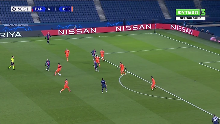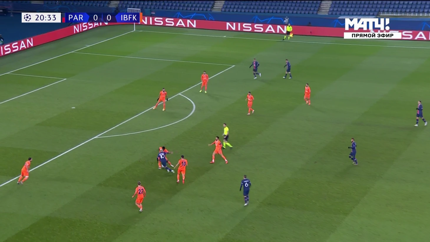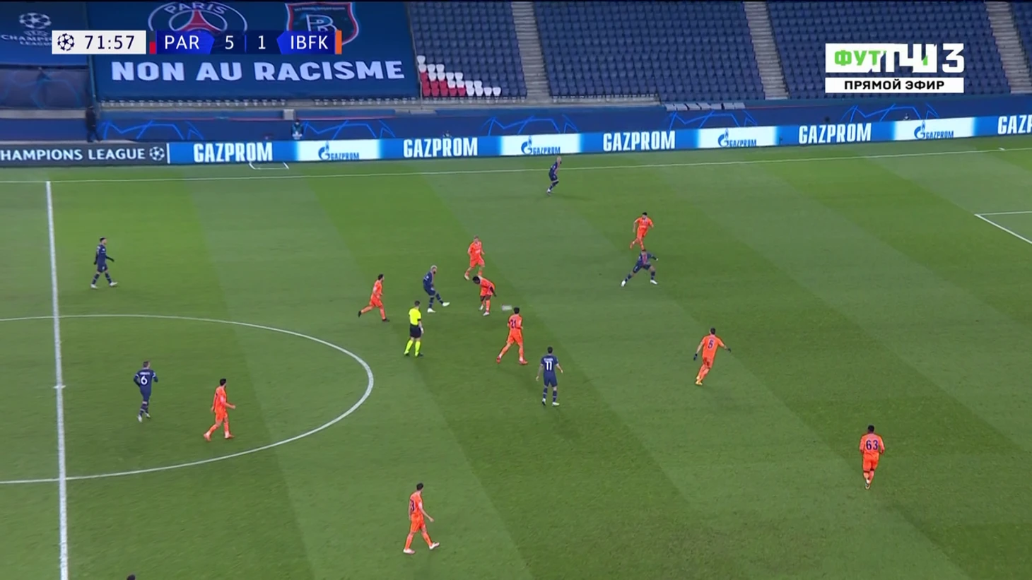72' Карлуш Понк. Защитник Истанбула ожидал попытку дриблинга со стороны Неймара, но тот воспользовался пространством между его ног и вывел Мбаппе на встречу с вратарём. Увы, тот не забил.