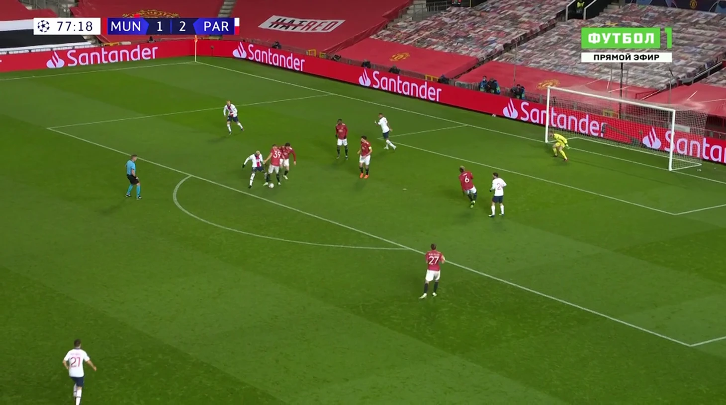 65' Фред. Неймар получил пас от Ди Марии, стянул на себя соперников и вернул передачу Анхелю через очко Фреда. Можно сказать, что «Париж» строил все свои атаки буквально через 17-го номера «МЮ».