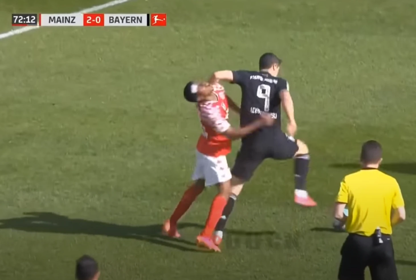Жесть из Бундеслиги. Левандовский разбил голову игроку «Майнца», но не получил даже жёлтой. А потом сделал это снова