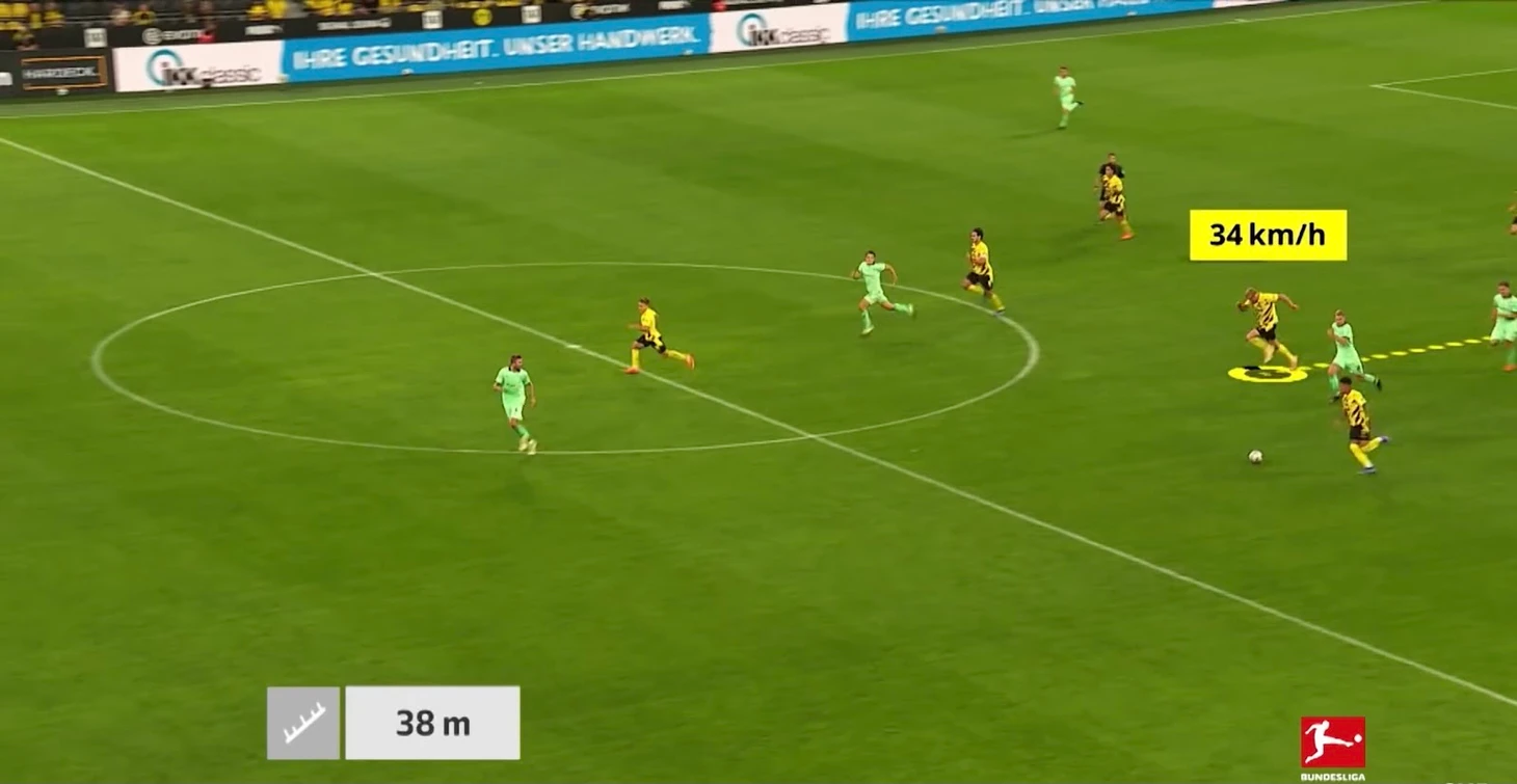 Во-вторых, у норвежца удивительный стиль бега. В сентябре 2020-го против «Гладбаха» Холанд пробежал 60 метров со скоростью 35 км/ч. В Бундеслиге разгонялись и быстрее, но ключевая деталь – в расстоянии. Так долго держать высочайшую скорость трудно.