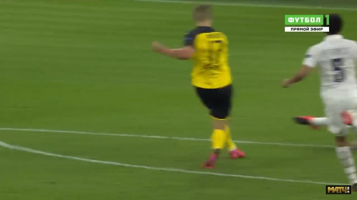 Здесь Брандт поднял голову и увидел, как Холанд точно указывает направление для передачи. Юлиан исполнил, Эрлинг забежал и внес мяч в ворота.