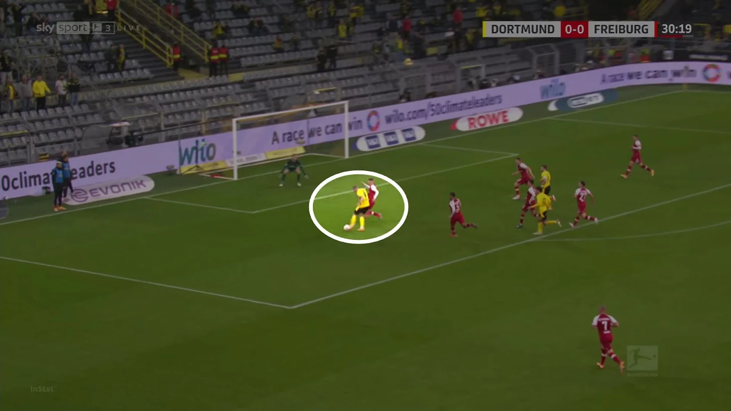 Для «Дортмунда» ситуация изначально была удачной («Фрайбург» потерял мяч у штрафной), Эрлинг не сделал ничего сверхординарного, он просто правильно двигался. Гениальность Холанда в том, что он почти всегда двигается правильно.