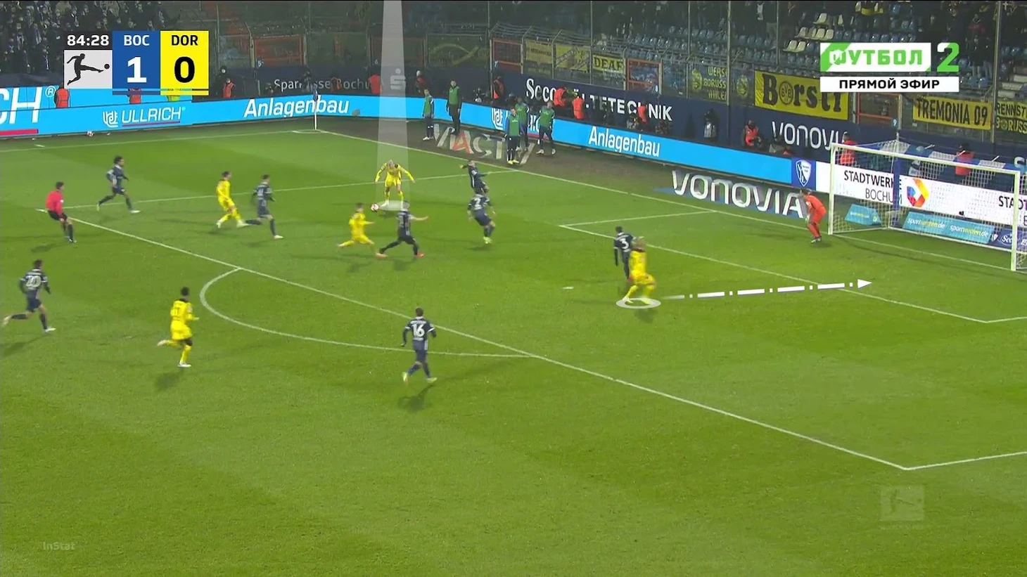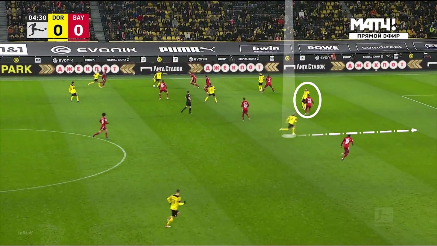 Закончим блок изысканным пасом Холанда из игры с «Бохумом». «Дортмунд» поддавил, Ройс быстро доставил мяч до Эрлинга, и тот идеально выкатил в центр штрафной на свободного Беллингема – Джуд не реализовал отличный момент. Важно отметить, когда Холанд заметил партнера – он глянул на него перед пасом Ройса.