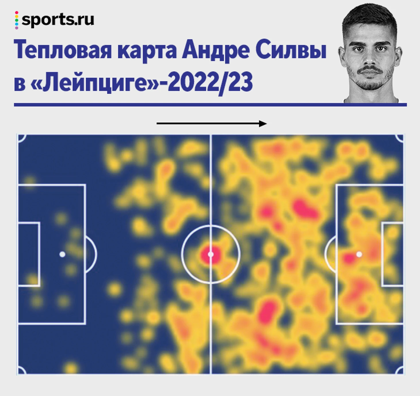 Навесы тоже есть, их поставляет левый защитник Давид Раум (именно крайние защитники в «РБ» дают ширину в атаке, пока четверка нападающих наполняет центральную ось), но Силва плохо ими пользуется – всего 4 гола в 21 матче Бундеслиги. Если бы не серьезная польза в подыгрыше, Андре наверняка получал бы меньше игрового времени.