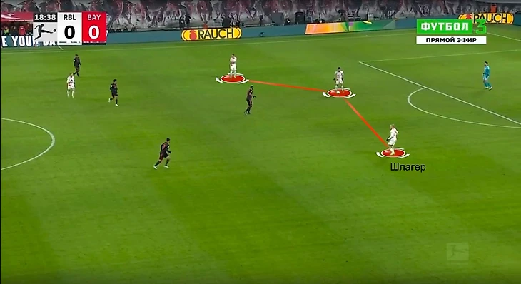 Во-вторых, Гвардиол элитно продвигает мяч на рывках и через пасы (подробно про это было в отдельном тексте про Йошко), а Шлагер делает выдающиеся забросы за спину. Ну правда выдающиеся – любопытно, что делает их немного, это не дирижер атак, но если все-таки решается, очень часто получается мини-шедевр.