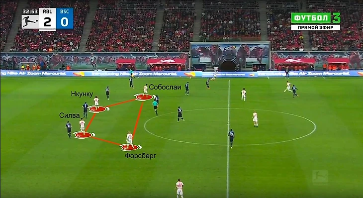 У каждого свой профиль, и разнообразие этих профилей гарантирует «РБ» вариативную угрозу. Силва борется за мяч, это опция для выхода из обороны длинным забросом; Ольмо чертит обостряющие пасы; Нкунку делает вообще все, на что в теории способен игрок атаки (без преувеличений, в этом сезоне даже забивал головой после навесов); Вернер дает объем открываний за спины и в недодачу; Собослаи то забьет с 30 метров, то вырежет тонкую передачу (2-й ассистент Бундеслиги с 8 голевыми пасами).