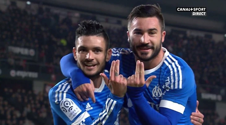 Во-первых, как приятно снова видеть радостного Реми Кабелла. Обладатель шикарной улыбки постепенно обретает себя в «Марселе», его гол — прямое тому подтверждение. Во-вторых, многие могли заметить этот непонятный жест на фото снизу во время празднования гола. Это ни что иное, как привет от команды популярному во Франции рэпперу JUL (прим.: эдакий марсельский Макс Корж), у которого сегодня вышел очередной альбом «My World». Хотя остряки тут же сказали, что это промоушн. Что ж, кажется, ход очень даже неплохой.