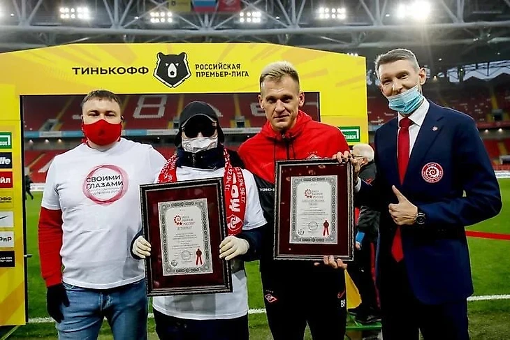Мы в фонде «Своими глазами» узнали про Диму, когда увидели, что идет сбор пожертвований в поддержку его проекта. Дима решил установить рекорд России среди незрячих дайверов, погрузившись на глубину 30 метров. Он давно поддерживает «Спартак» и посещает матчи, поэтому мы помогли закрыть сбор.