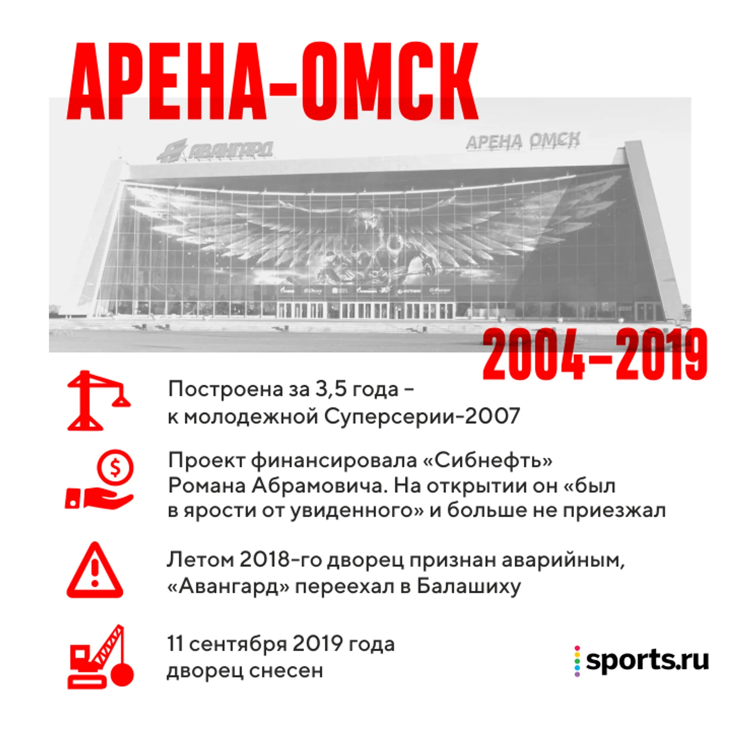 12 марта 2018 года «Авангард» сыграл последний официальный матч на «Арене-Омск». Тогда, после плей-офф с «Салаватом Юлаевым», никто и не подозревал, что хоккейный дворец вскоре признают аварийным, а вместо реконструкции выберут снос и новую стройку.