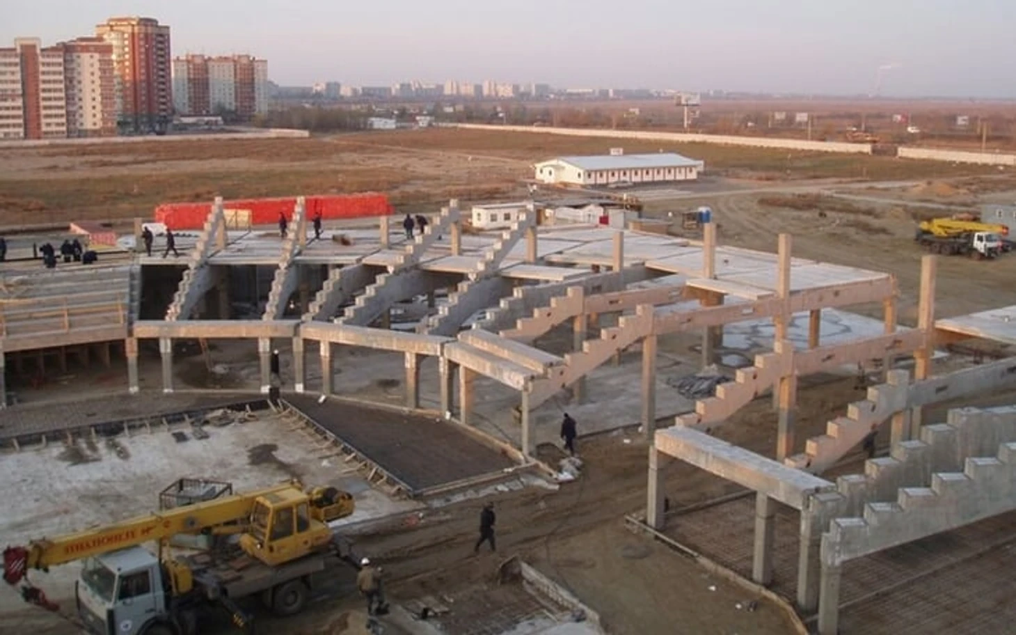 Вот фото времен строительства «Арены». Слева видны дома «Прибрежного» и 6-го микрорайона: