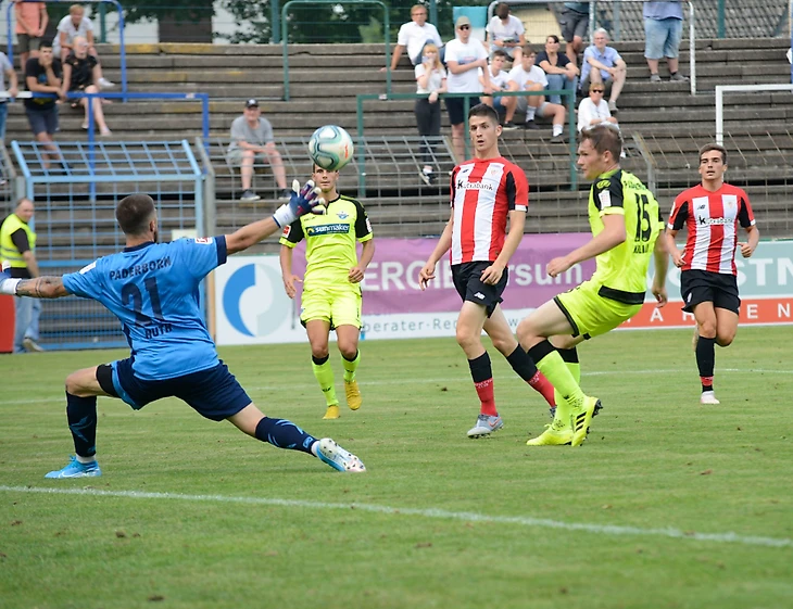 Проблема заключалась в том, что оба немецких клуба находились на заключительном этапе предсезонной подготовки, тогда как баски только-только почувствовали поле. Это сказалось уже в первой встрече. «Атлетик» предложил сопернику быстрый темп и отлично начал — стартовый свисток едва отзвучал, а Ларрасабаль уже принимал поздравления с первым голом за взрослую команду. Но со временем стала проявляться разница в физической готовности, и «Падерборну» не составило труда переломить ход встречи. К 67-й минуте, когда Гаритано заменил вконец уставший стартовый состав, «Атлетик» горел 1:3.