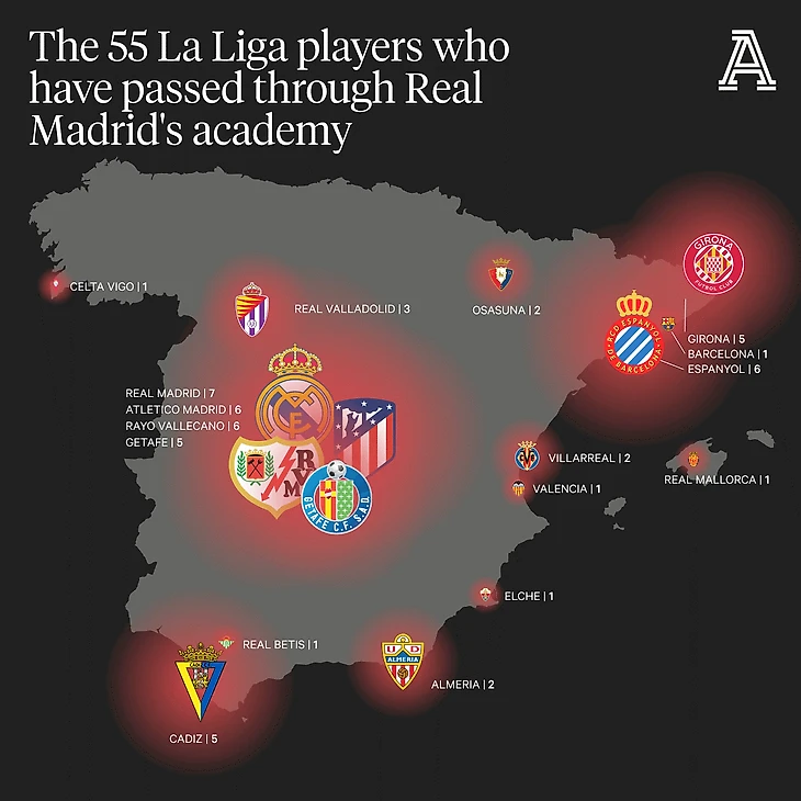 Не зря академию называют La Fabrica – термин, придуманный легендарным бывшим игроком и президентом «Реала» Альфредо Ди Стефано. По данным The Athletic, через такую плодовитую академию прошли 55 действующих игроков Ла Лиги. Даже у заклятых соперников «Барселоны» имеется один такой игрок: Маркос Алонсо, перешедший из «Челси».