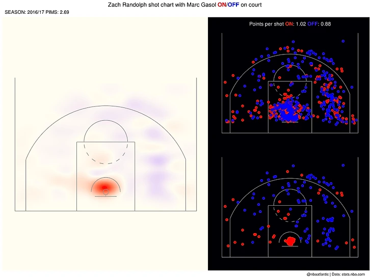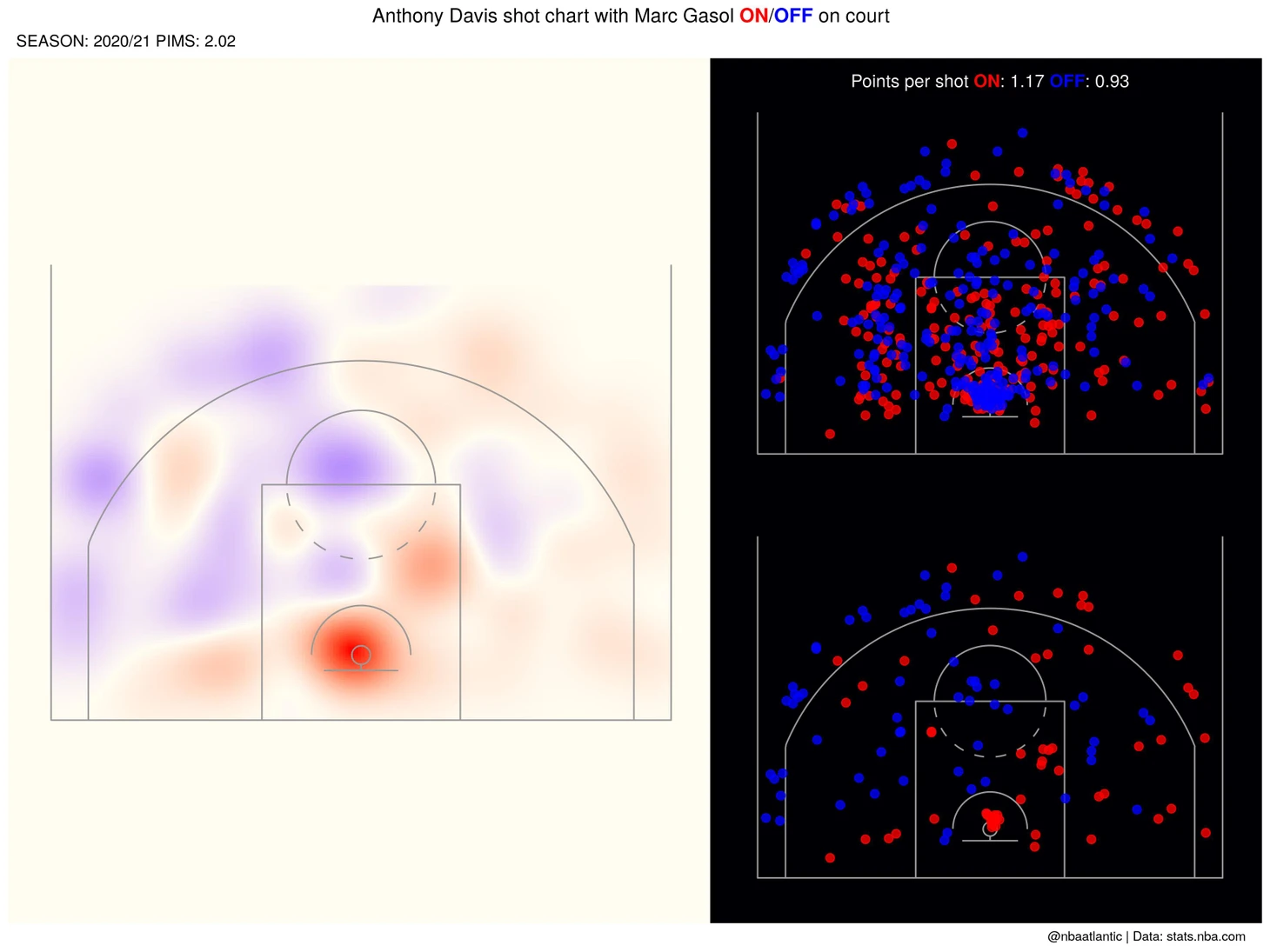 На Дэвиса в чемпионском сезоне Брон не влиял никак (PIMS отрицательный), а вот в прошлом он резко вырос до 1,86. Однако, их карта очень сильно похожа на карту Дэвис-Газоль, так что, видимо, не в Короле дело.