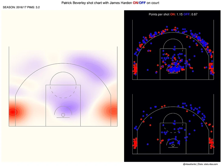 То же самое с Патриком Беверли. В сезоне-2016/17 три верхние строчки занимает Патрик с тремя партнерами: Джеймсом Харденом, Райаном Андерсоном и Сэмом Деккером. Сама мысль, что Сэм Деккер в НБА влияет на чей-то бросок, даже на свой, противоестественна. У меня есть идеи, как можно попытаться убрать эти «дубликаты», но пока метрика требует оценки человека и его здравого смысла.