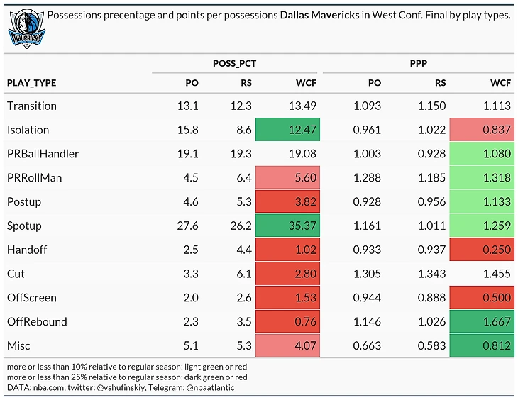 Суммарная play type статистика Даллас Маверикс в финале конференции