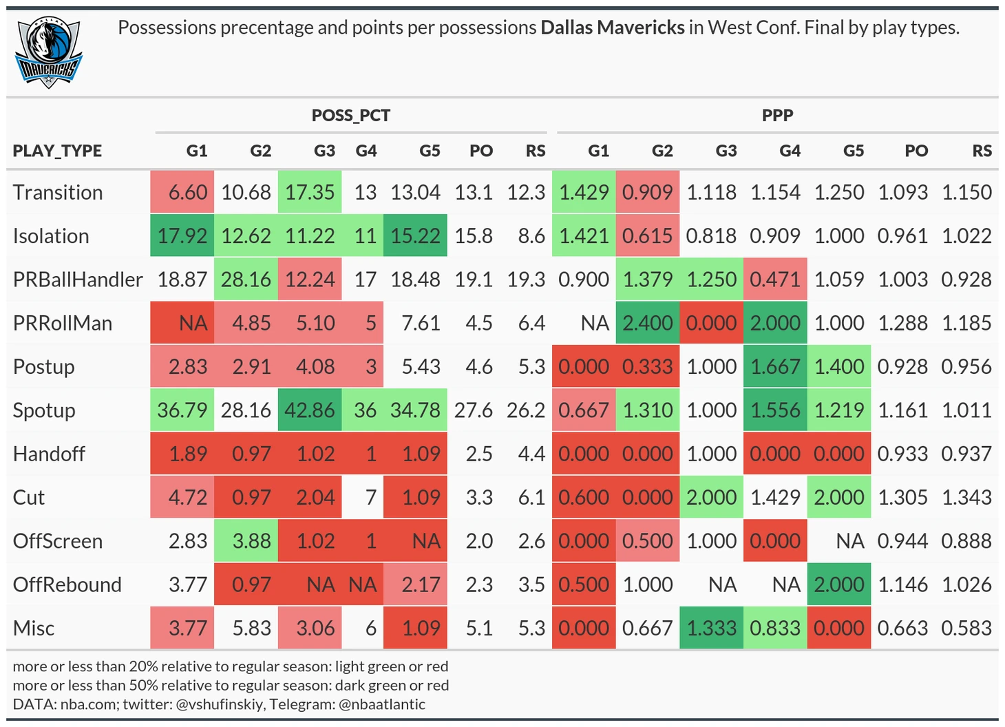 Play type статистика Даллас Маверикс в каждой игре финала конференции