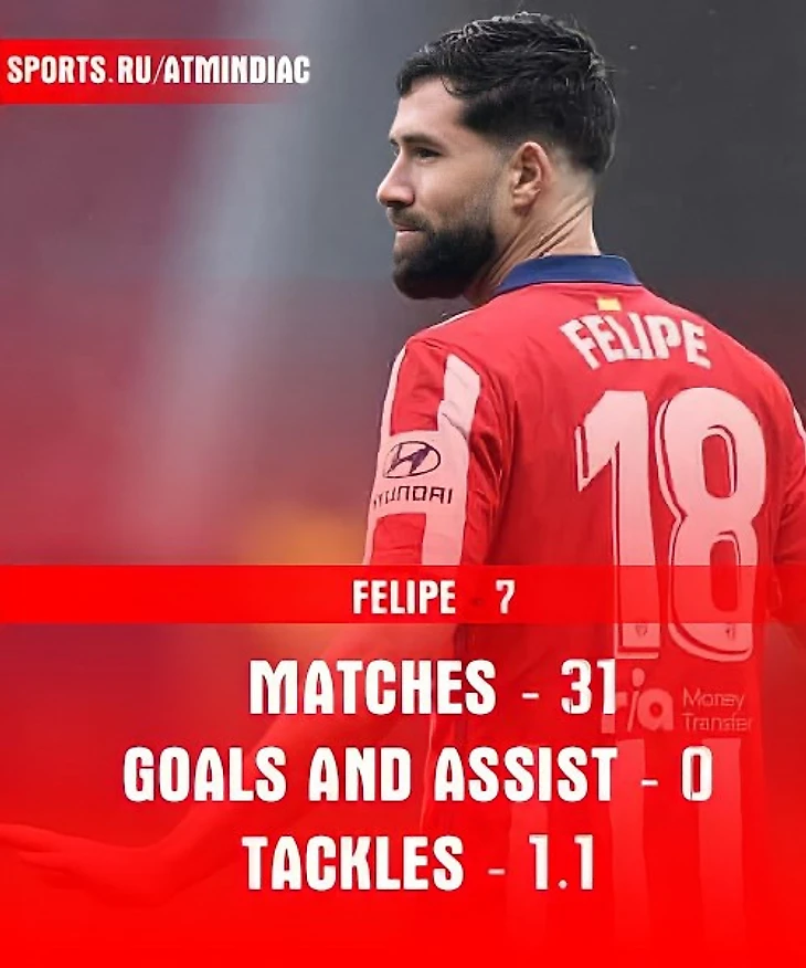 Фелипе в прошлом сезоне стал одним из главных открытий, попадал в списки лучших трансферов лета в Примере и выдал один из лучших сезонов в карьере, во многом он получал так много шансов из-за травм Хименеса и большему опыту, относительно Марио Эрмосо, который был задвинут в запас. В этом же году Фелипе играл в основе приблизительно столько же, но из-за измененной схемы игры ему часто не хватает скорости, чтобы угнаться за нападающими, чаще всего его страховал Савич, или в крайнем случае Облак. Оценка – твердые 7 из 10!