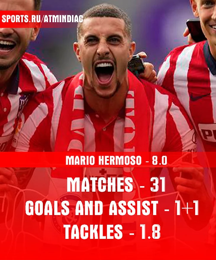 Марио стал в этом сезоне, наверное, главным ключом к перестроению «Атлетико» на новую схему, именно он исполнял одну из главных задач в обороне – играл гибридную роль, в которой он номинально был левым центральным защитником и левым крайним, это помогало страховать Карраско и давать ему больше свободы в атаке. В сравнении с прошлым сезоном Эрмосо сильно вырос и дал команде необходимую вариативность в обороне, меняя позицию по ходу матча. Заслуженные 8 из 10.