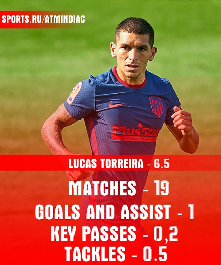 Лукас стал одним из моих самых главных разочарований этого сезона. Стилистически уругваец идеально вписывается в игру «Атлетико», очень быстрый, довольно техничный полузащитник с невероятно крутым отбором, но что-то пошло не по плану. В начале сезона он часто появлялся в основе в связке с Коке и Льоренте, показывая себя наилучшим образом, он хорошо двигался и часто шёл в опасные подкаты. Но к середине сезона Торейра был задвинут на скамейку, также нужно учесть и тот факт, что у Лукаса зимой умерла мама, из-за чего он улетел в Уругвай на несколько недель и прервал тренировки, кстати, выигранное чемпионство он посвятил именно своей маме.
