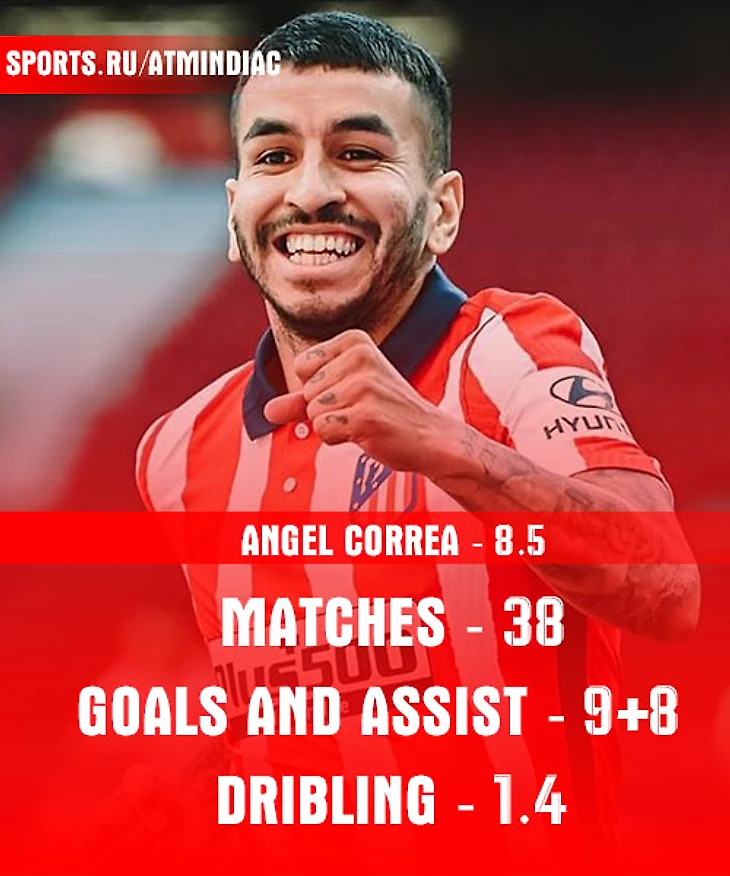 Я не перестаю восхищаться трудолюбием и упорством Анхеля, после мощных трех месяцев от Феликса, думалось, что аргентинец вновь станет лишь джокером, который спасает матчи, как было при Гризманне. Но Корреа буквально вырвал себе место в основе благодаря своей блестящей игре, особенно в концовке сезона, в которой Симеоне сделал на него ставку и не ошибся. Анхель зарешал в матчах с «Вальядолидом», «Сосьедадом» и «Эйбаром», в котором вообще сделал 2+1. Хоть Корреа и мазал с убойных позиций в важных матчах, он определенно реабилитировался в концовке сезона и заслужил такую оценку.