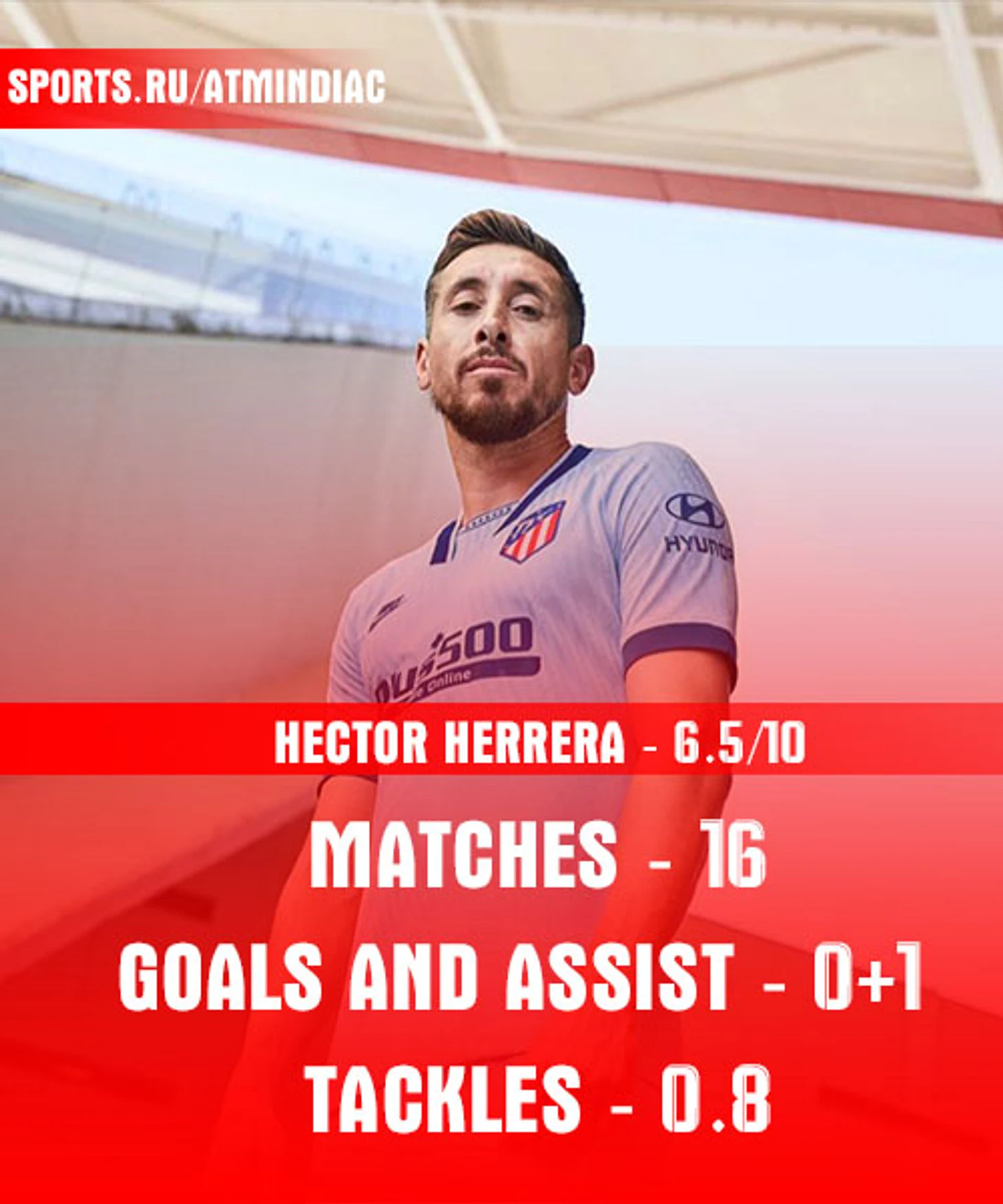 Эктор в этом сезоне был неплох, но не более того. Ближе к концу сезона Эррера даже на несколько матчей стал основным, но лишь потому что Сауль был не в форме, а у Лемара была травма. Мексиканец очень хорошо владеет длинным пасом и чаще всего его основной функцией на поле были именно диагонали на фланги, после которых и развивалась атака. Довольно средний, как и прошлый сезон от запасного мексиканца.