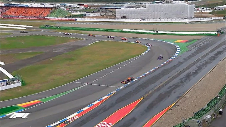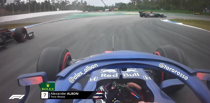 Ему не повезло с самых первых метров дистанции: его 14-я стартовая позиция оказалась на более мокрой части решетки, и практически каждый начавший заезд с четной половины дороги проиграл нечетным конкурентам. Ферстаппен проиграл три позиции (но быстро их вернул), Гасли провалился на десяток и потом вообще стал последним, у Грожана оказалось -9 мест — по сути только гонщики «Феррари» умудрились начать заезд без откровенного понижения. А еще напарник Квята Александр Албон — он поднялся с 17-го на 11-е уже за пять кругов.
