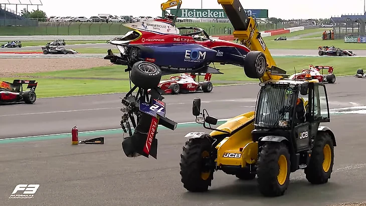 Первая британская гонка в «Формуле-3» выдалась насыщенной на аварии: сразу три отрезка под машиной безопасности позволили новозеландскому пилоту программы «Ред Булл» Лиаму Лоусону сохранить преимущество, завоеванное на первых кругах, и одержать вторую победу в серии.